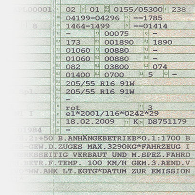 Diese findest du in Deinem Fahrzeugschein bzw. deiner Zulassungsbescheinigung Teil I.
